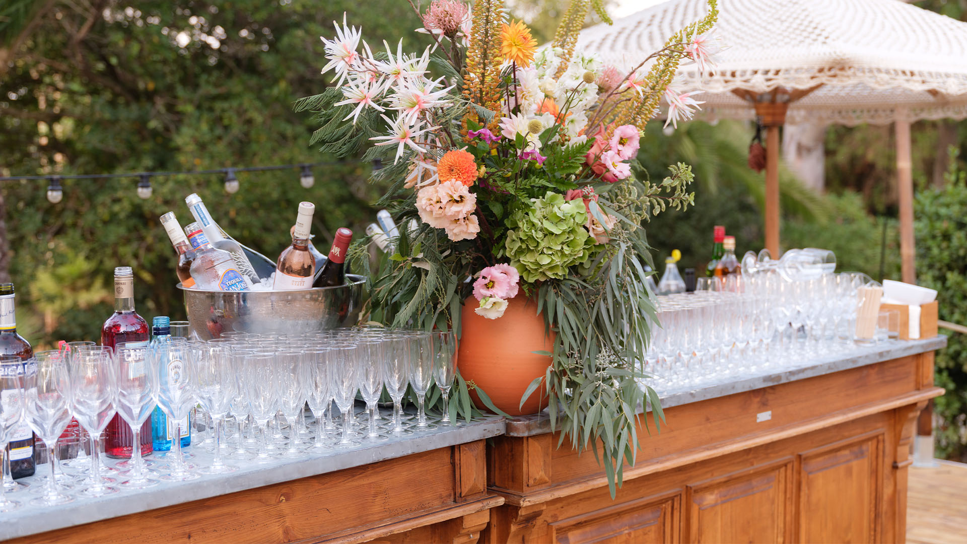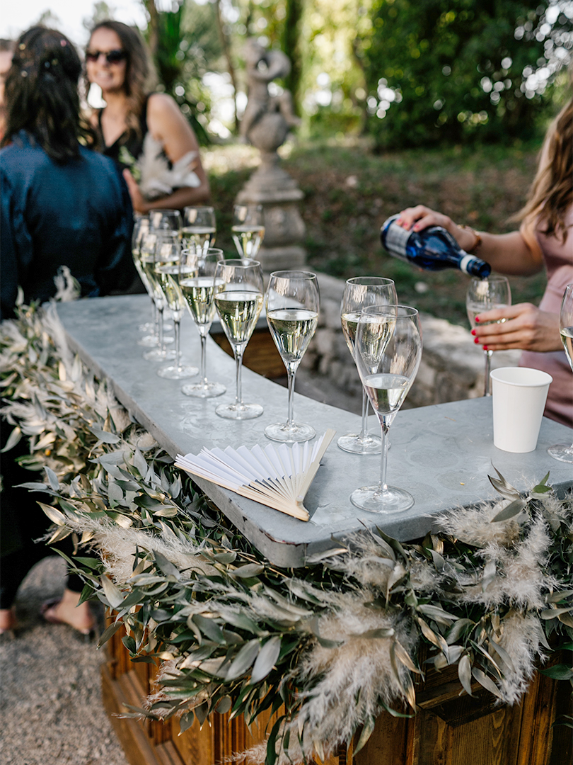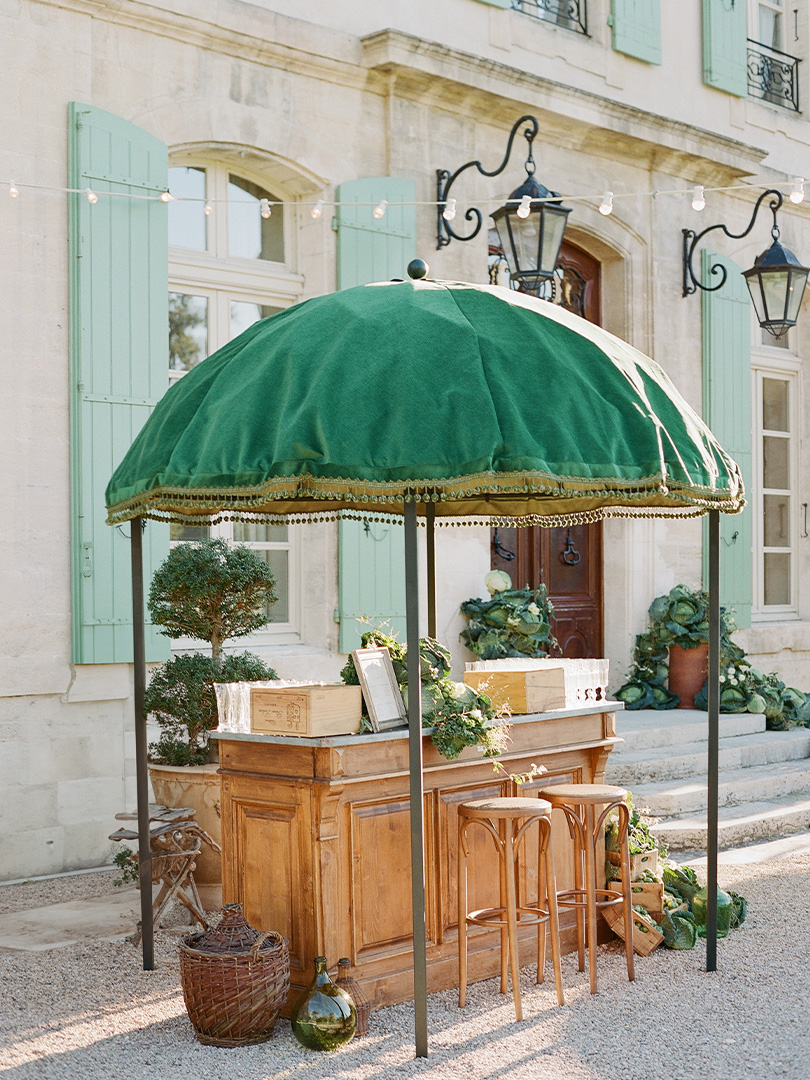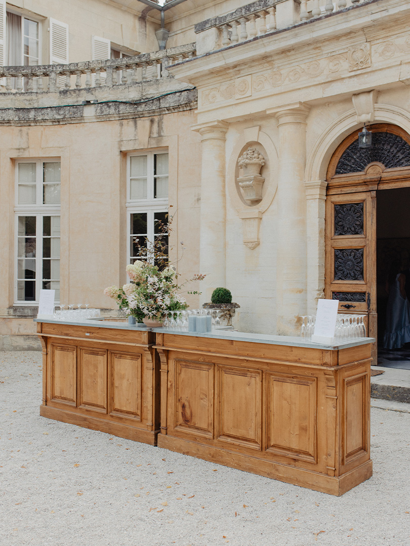 This bar with its aged wood design and zinc top has a vintage look, adding character to your receptions.
