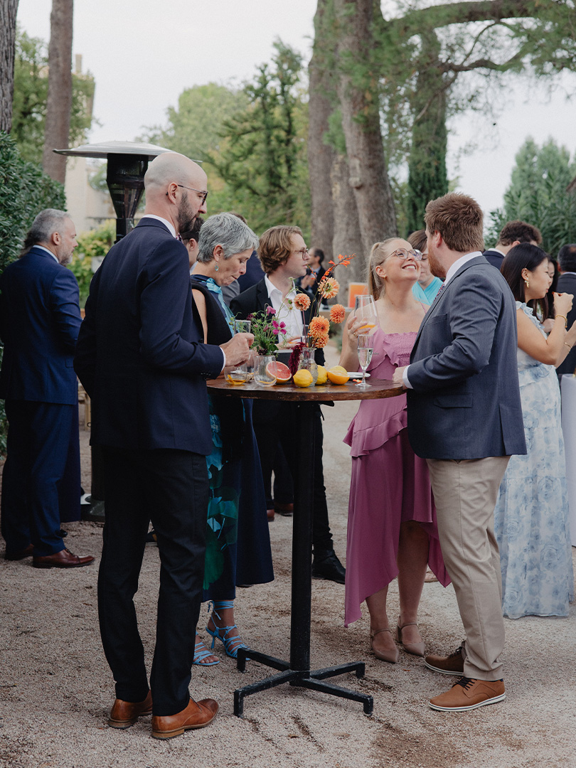Example: at a corporate cocktail event for 100 guests, our wood and metal standing tables helped create a chic, functional setting, encouraging interaction between colleagues and delivering a professional, warm, and well controlled atmosphere.