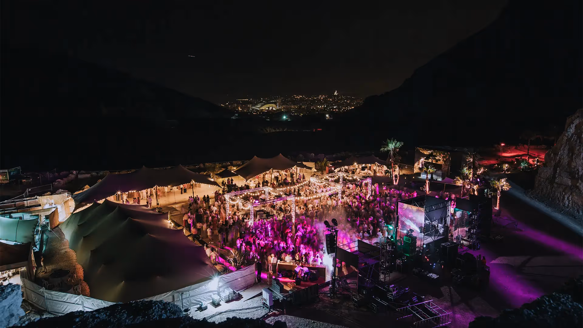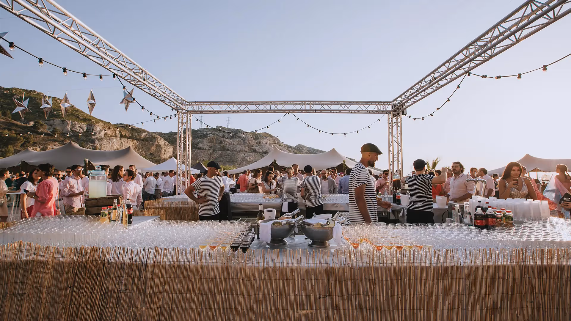 Under the canvas, palms, bars and lighting came to life in sync with a scenography designed to elevate the energy of the place. Concrete turned to beach, dust to gold.