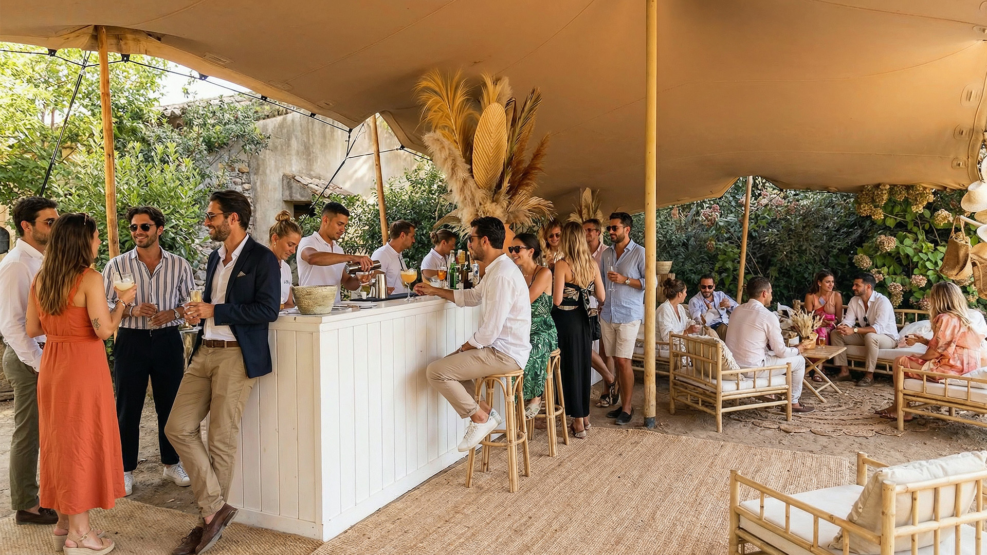 Le Bar Guinguette installe un comptoir de service simple et efficace, avec un rendu bois qui s’intègre immédiatement dans des scénographies naturelles, champêtres ou bord de mer. La structure en bois existe en deux finitions, brun clair ou blanc, pour s’adapter à l’identité de l’événement et au mobilier associé. Le plateau en bois apporte une surface de travail cohérente et pratique, idéale pour le service boissons, l’accueil ou un corner dégustation. Le Bar Guinguette optimise la logistique grâce à ses parois pliables, qui facilitent le transport, l’installation et l’adaptation sur site. Le bar structure les flux, crée un point de commande lisible et améliore l’expérience invité sans alourdir l’espace. Le Bar Guinguette fonctionne parfaitement avec les mange debout, les assises bois et les éclairages Be Lounge, pour composer une zone bar claire, rapide à mettre en place et rentable, en intérieur comme en extérieur abrité.