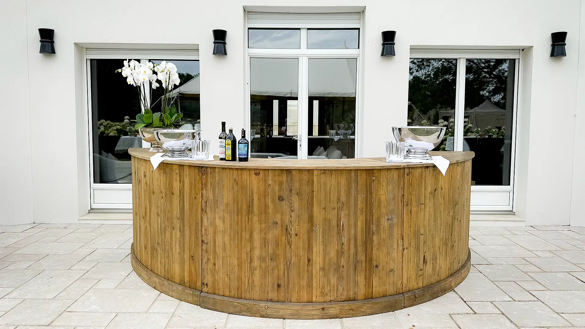 Transformez votre espace de bar en un lieu à la fois fonctionnel et esthétique avec notre bar arrondi Rotonde. Vous pouvez le doubler pour former un cercle complet d'un diamètre de 3,5 mètres.