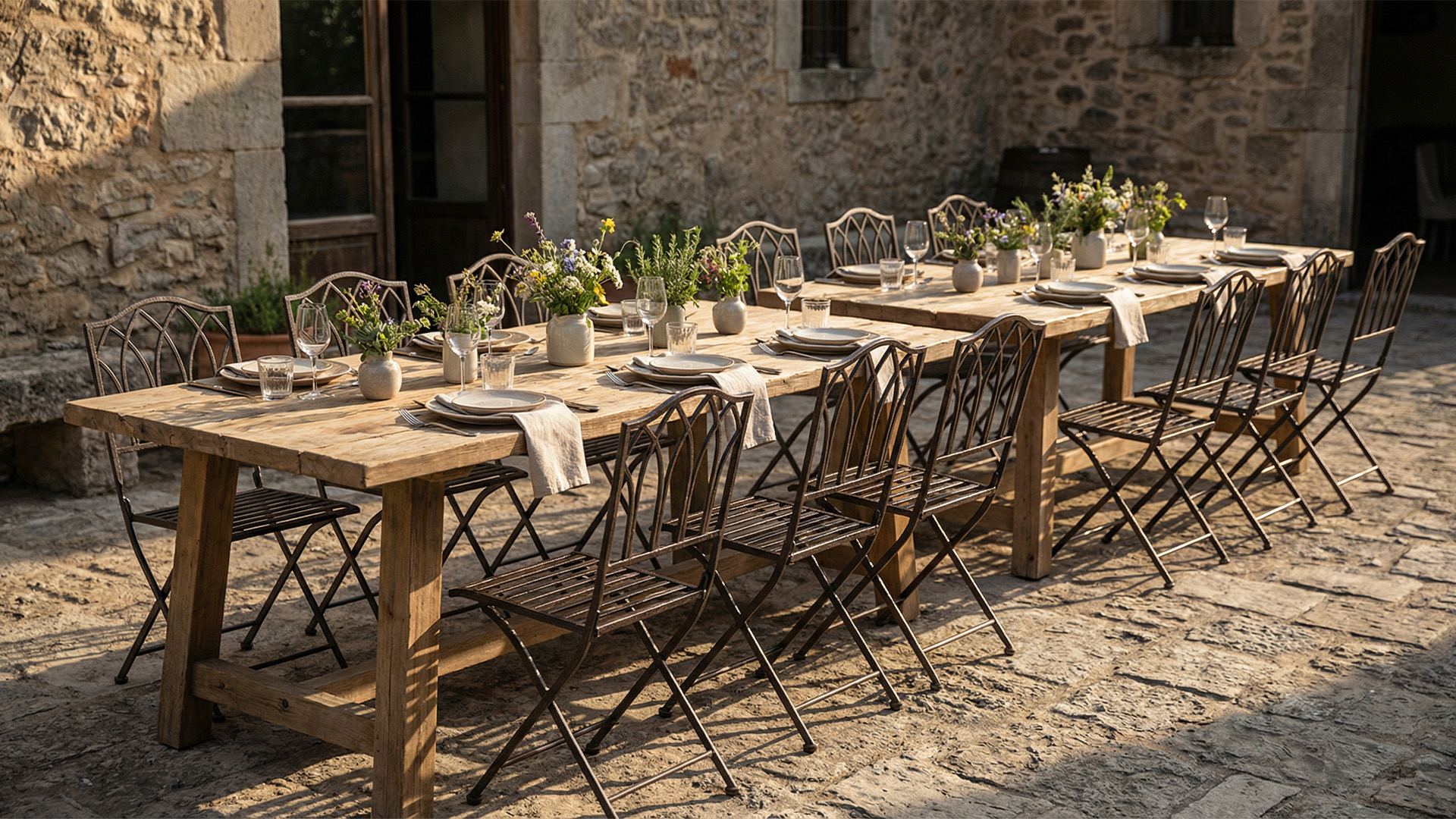 La chaise Amélie apporte une touche de caractère avec son design inspiré du fer forgé. Sa finition noir oxyde et son dossier ajouré aux lignes élégantes donnent une présence forte, parfaite pour structurer une réception et renforcer une scénographie soignée. Pliable et facile à installer, elle convient aussi bien aux dîners qu’aux cocktails, en intérieur comme en extérieur. Robuste et stable, la chaise Amélie s’intègre naturellement dans des ambiances provençales, patrimoniales ou contemporaines, pour des mariages, réceptions privées et événements corporate.