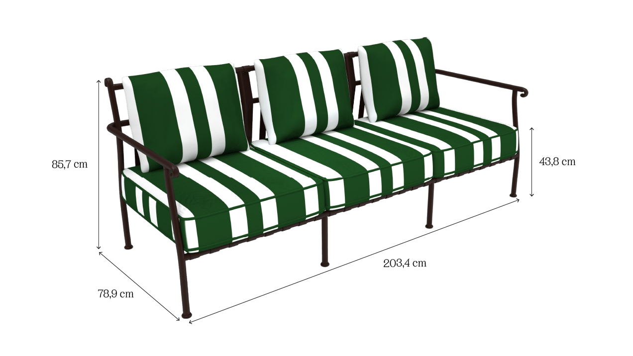 Notre mobilier Provence est livré avec ses coussins sunproof et waterproof. Structure en aluminium thermolaqué aspect fer forgé. Plateau en céramique.