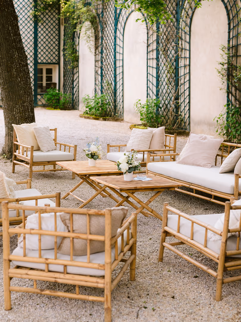 Au-delà de son esthétique soignée, notre mobilier offre une personnalisation complète. Chaque pièce peut être associée, combinée ou modulée pour créer l’atmosphère exacte que vous souhaitez, qu’il s’agisse d’un mariage en plein air, d’une réception intime ou d’un événement professionnel.