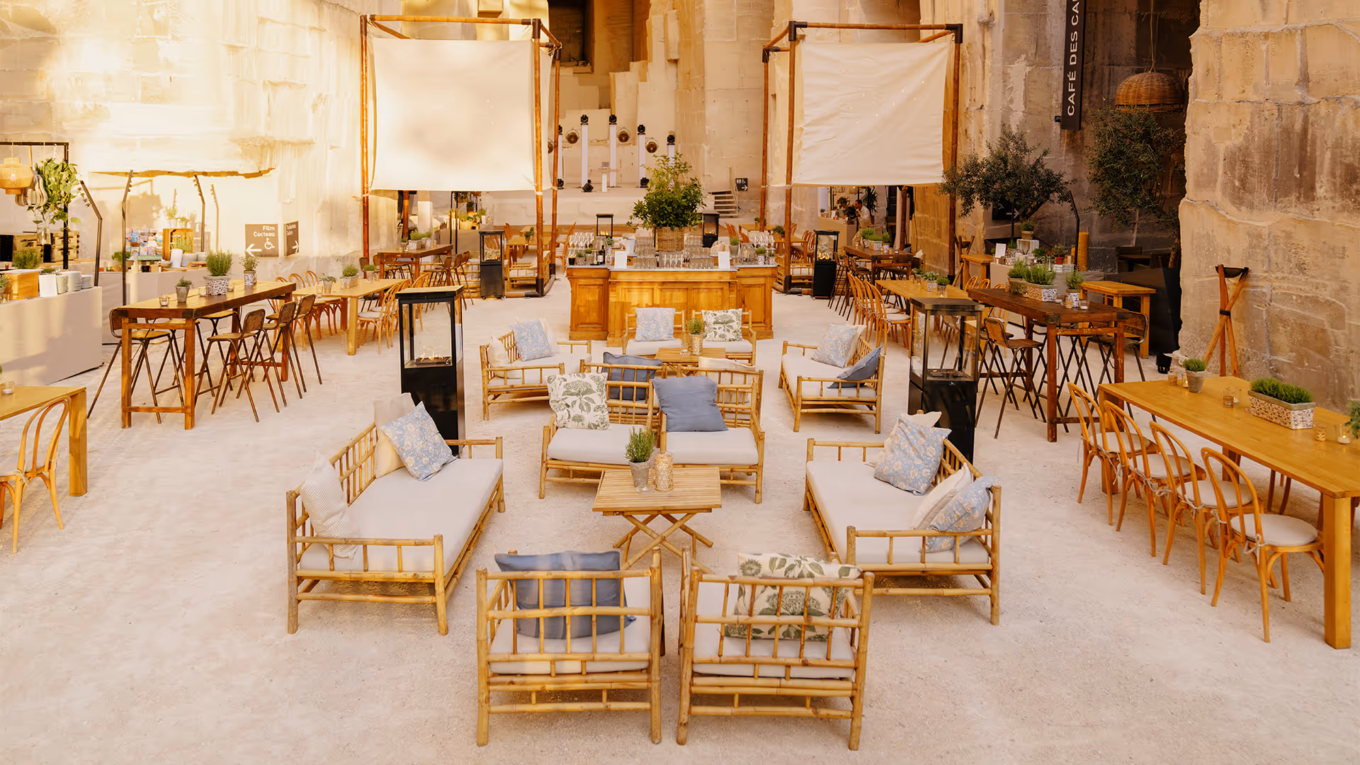 Les bancs facilitent l’implantation, renforcent l’esprit convivial et assurent un rendu cohérent sur photo, pour les événements privés comme corporate.