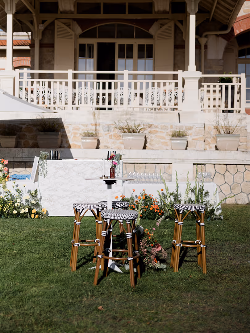 Les tabourets optimisent la circulation, s’intègrent facilement à toutes les ambiances et assurent un rendu net sur photo, pour les événements privés comme corporate.