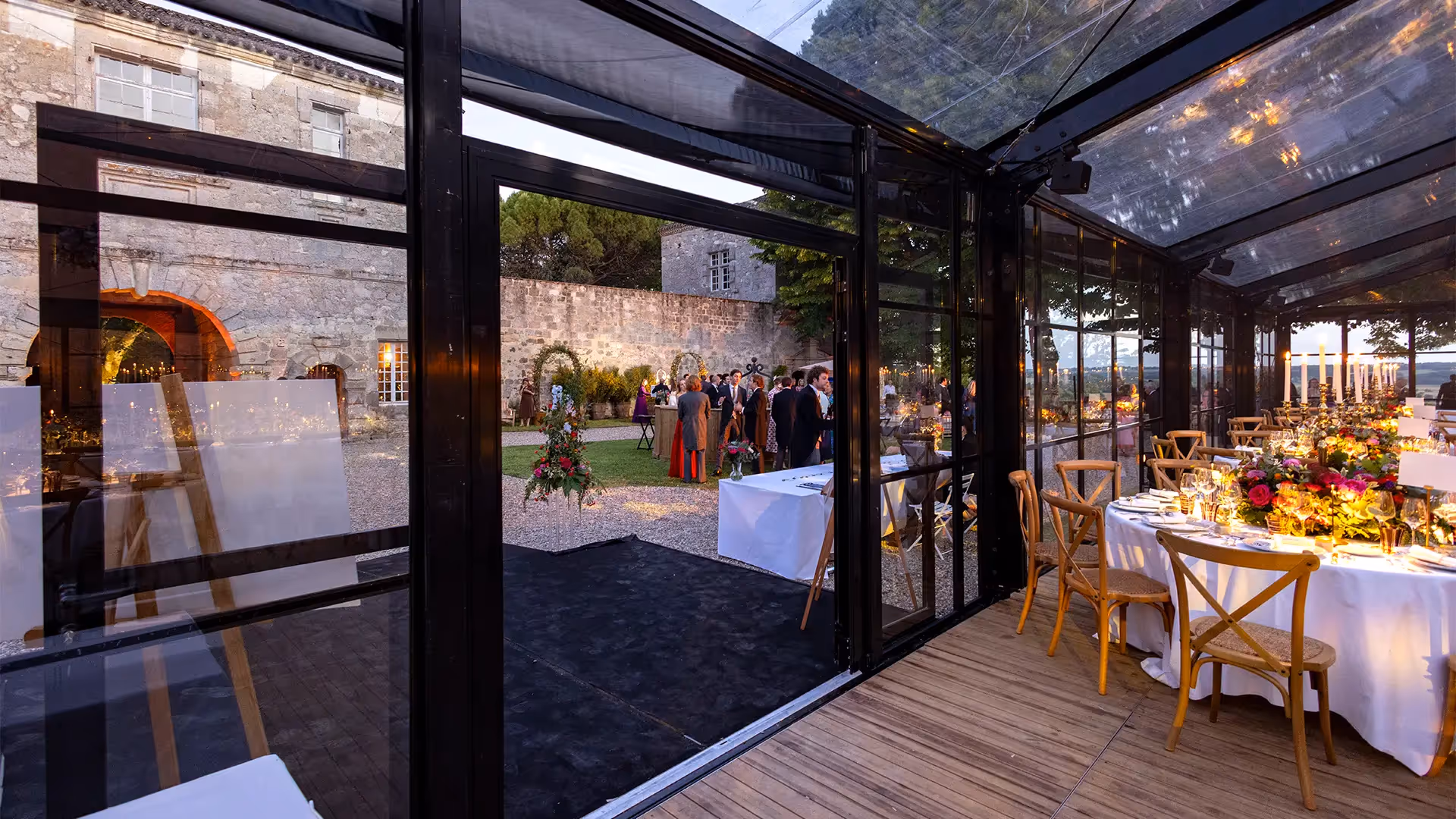 À deux pas de Toulouse, dans le calme feutré d’une propriété privée, un mariage a trouvé refuge sous une structure d’exception. La verrière Blackline, 525 m² de transparence et de lignes noires tendues vers le ciel, a accueilli les convives pour une soirée tout en raffinement.