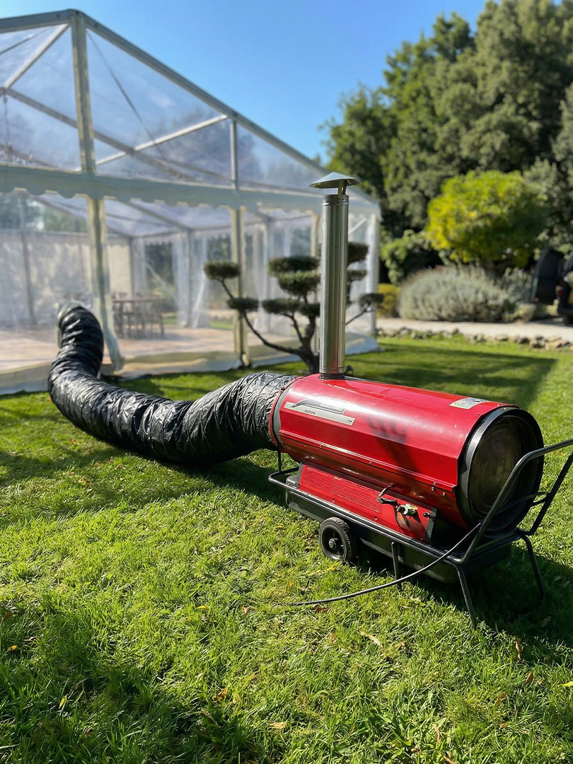 idéal pour réchauffer rapidement une tente, une verrière ou un espace de réception. Solution efficace pour améliorer le confort des invités en conditions fraîches, en intérieur comme en extérieur abrité.
