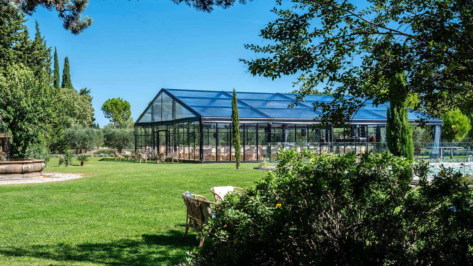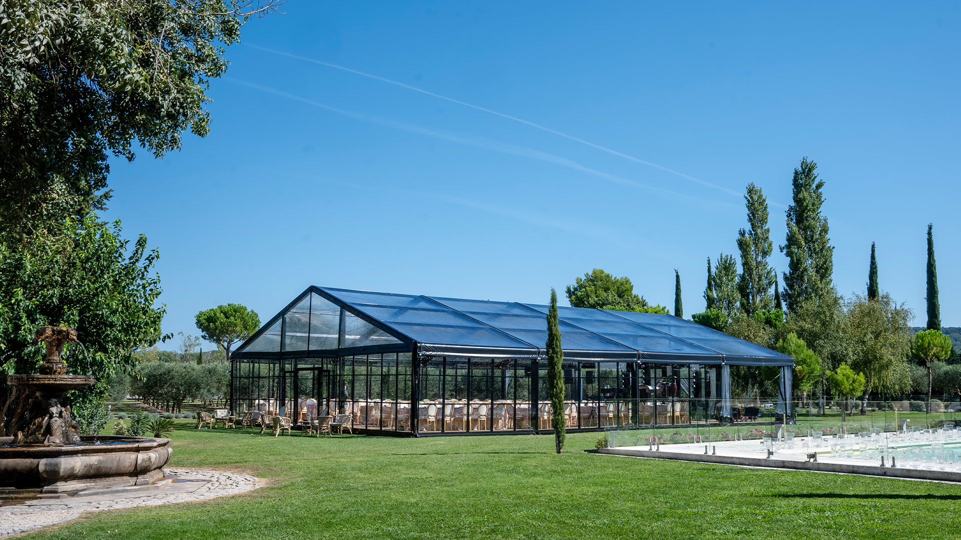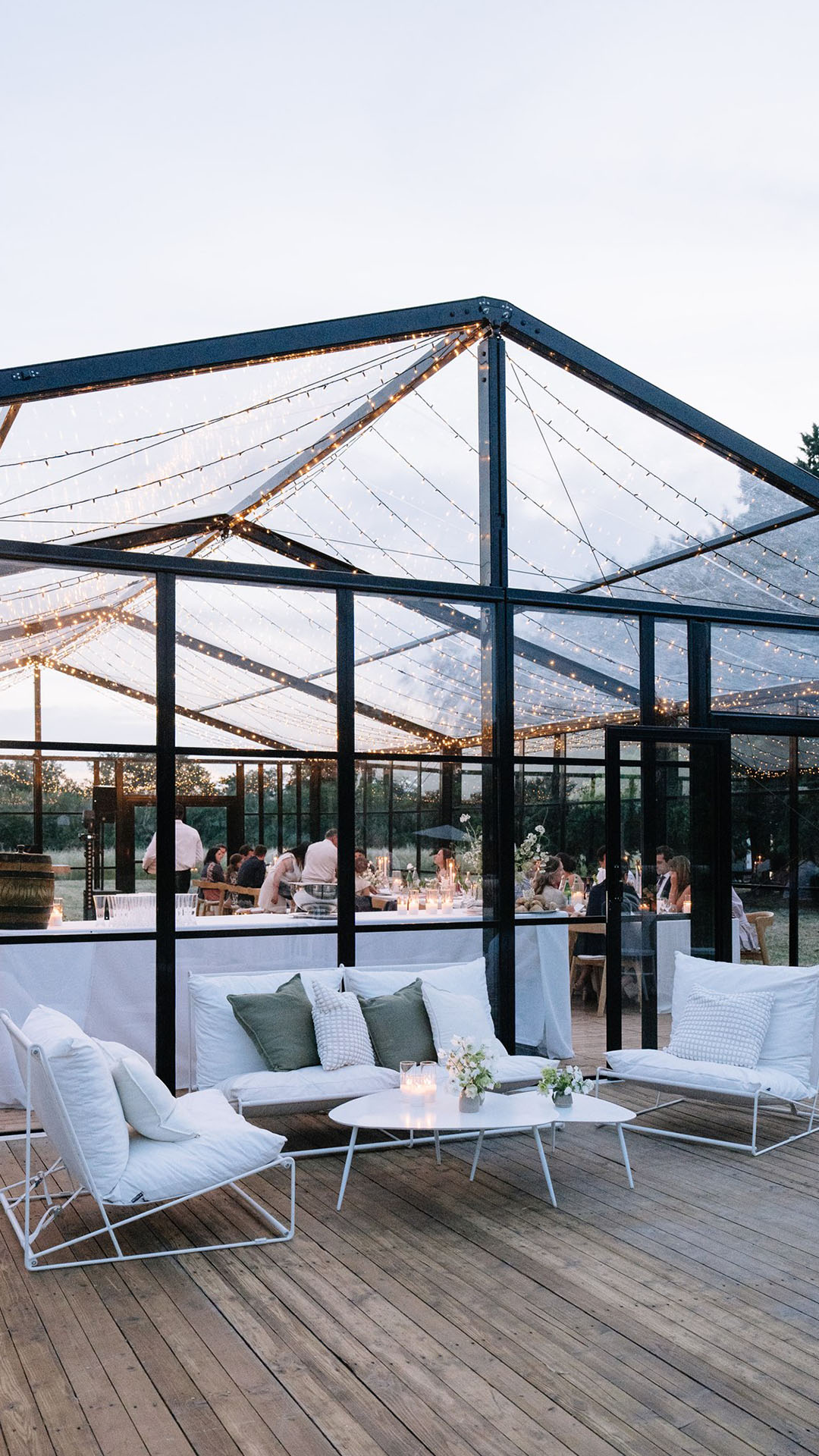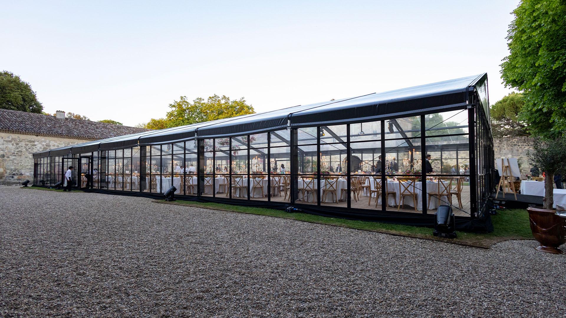 La verrière Blackline est une structure événementielle vitrée à l’identité architecturale forte. Pensée pour accueillir des événements haut de gamme, elle associe transparence, lignes graphiques et métal noir pour créer un espace à la fois lumineux, structuré et contemporain.Son design affirmé permet de valoriser aussi bien des réceptions privées que des événements professionnels, dans des environnements naturels, patrimoniaux ou urbains.